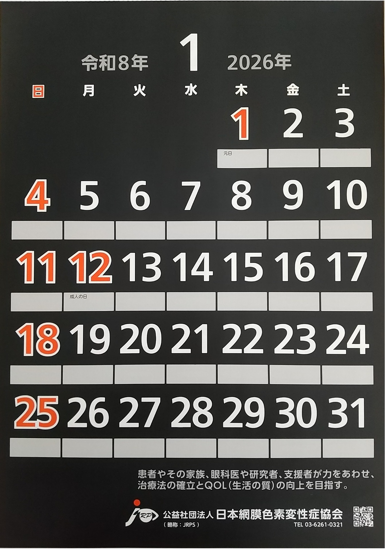 JRPS白黒反転カレンダー 販売開始!
